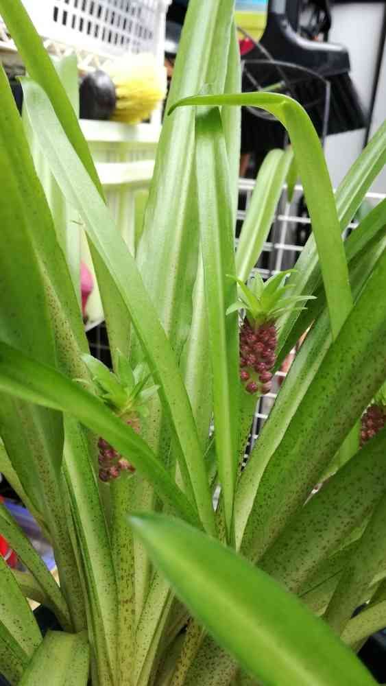 こちらは先ほど投稿のユーコミスよりかなり小ぶりで赤系のパイナップル花が着きました。