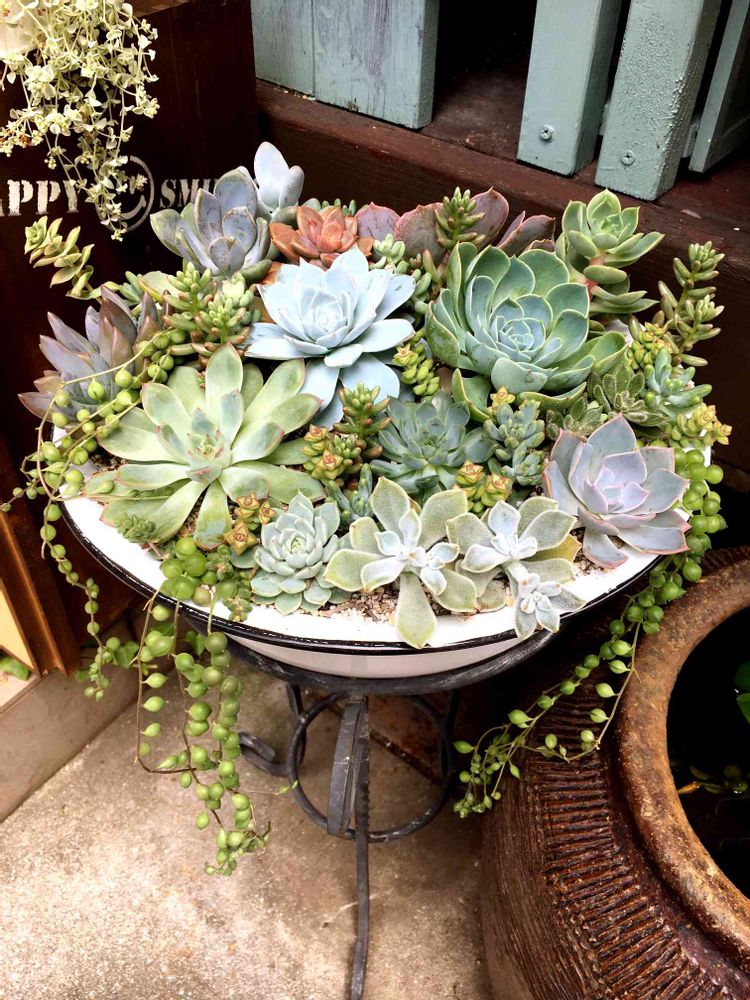 このホウロウ寄せ植えに癒されっぱなしの毎日です(*˘︶˘*).。.:*♡