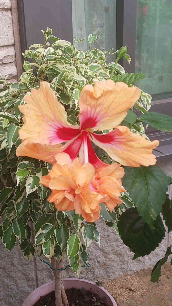 まみ~さんのハイビスカス,ハイビスカス オレンジ・フラミンゴ,斑入りベンジャミンの投稿画像