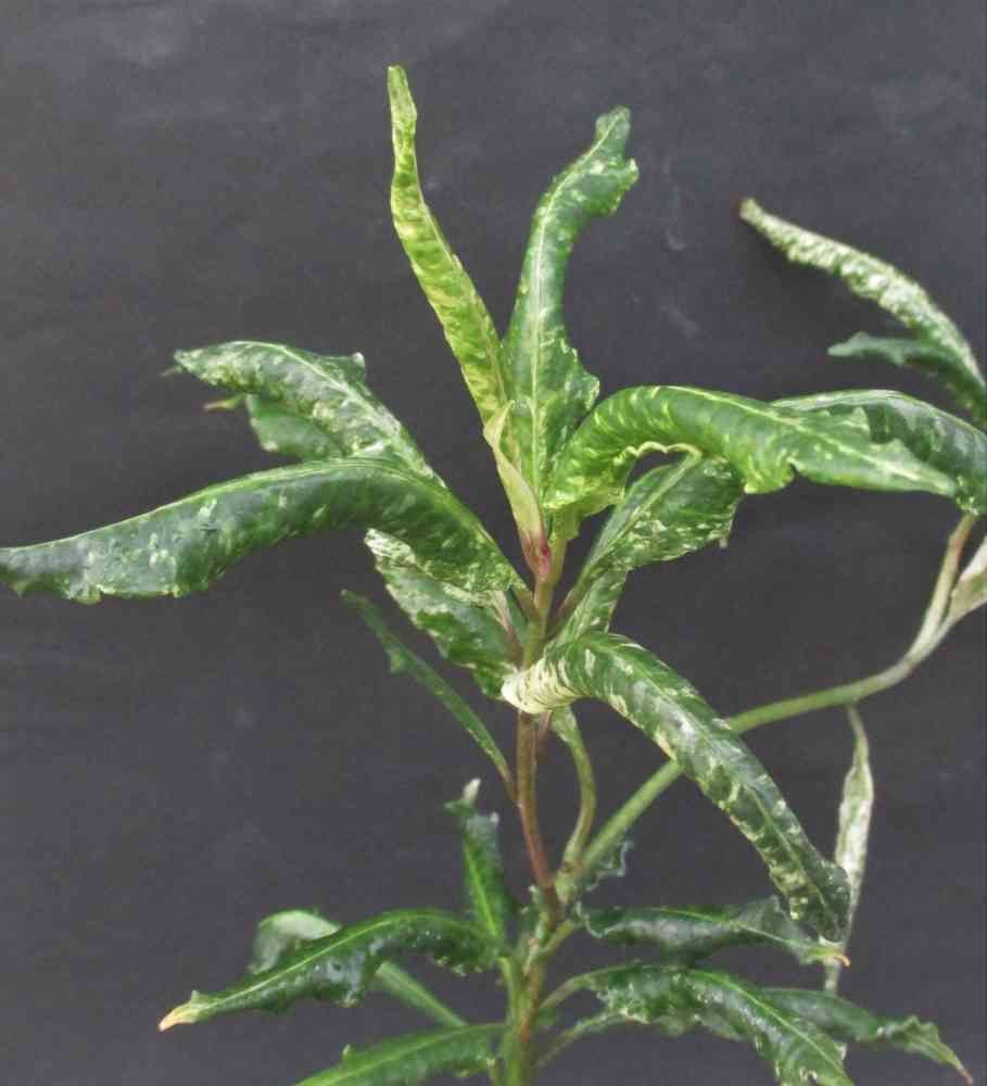 万両な金龍という品種です😊細長い葉で巻き葉、砂子斑が入る珍品😃