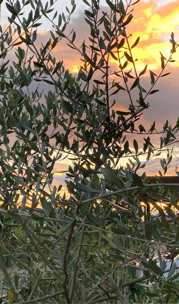 綺麗な夕焼けに、脚立から急いでおりオリーブ越しにパチリとした、慌ただしいpicです笑 ありがとうございます(〃ω〃)✨