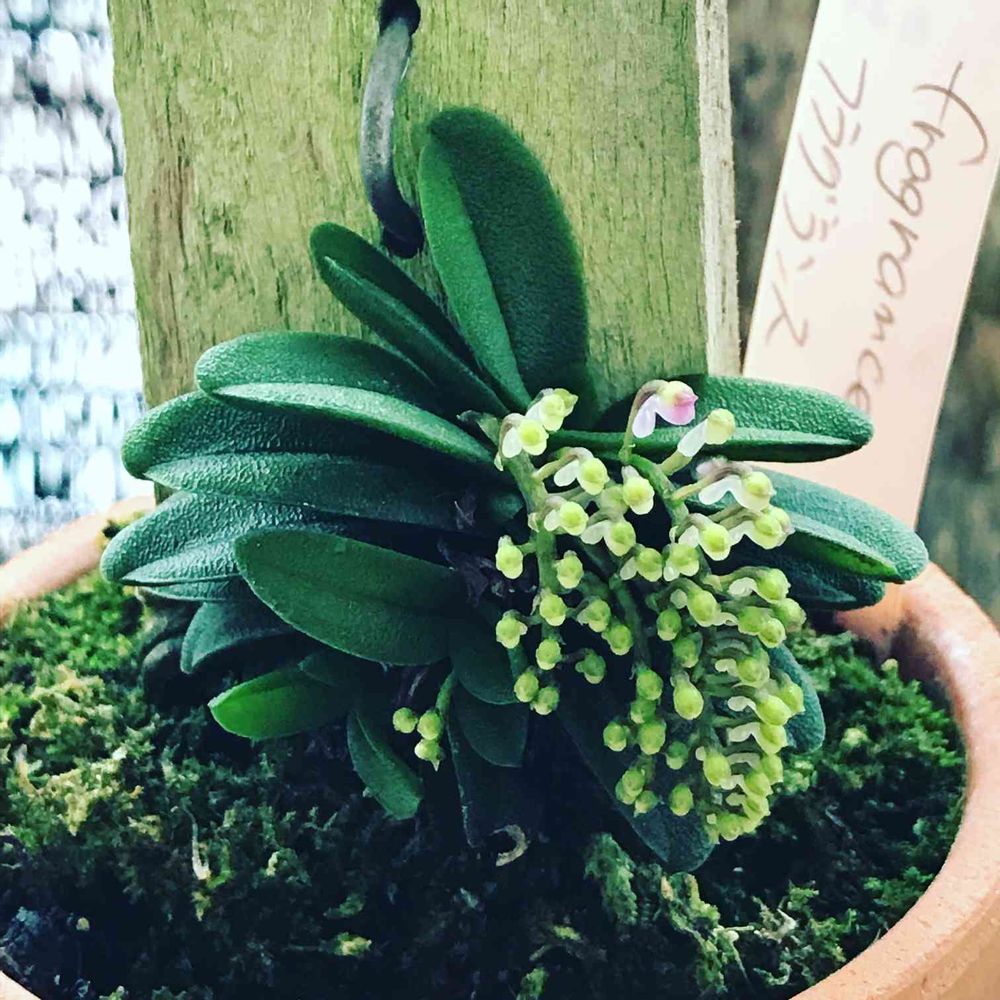 デンドロで鉢から板に変えたのも、むっちゃ葉もバルブも小さくなって、温室無しの日本の家で育てるには板付けは向いてないな、としみじみ😞空中湿度が低すぎですね。これは、たしか、板付けで売ってたのをケンジさんが鉢植えに仕立てたんだったような🤔インスタ見てても花付きが悪いですものね😞