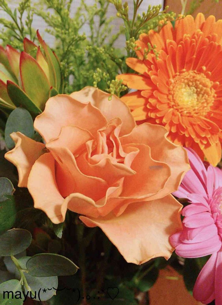 オレンジの薔薇さんとガーベラ🧚♀️🍃