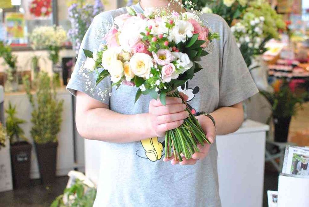 10年目の付き合った記念日ですが、夜勤で会えないので、サプライズで自分で作ったブーケを配達して欲しいと来店されました。