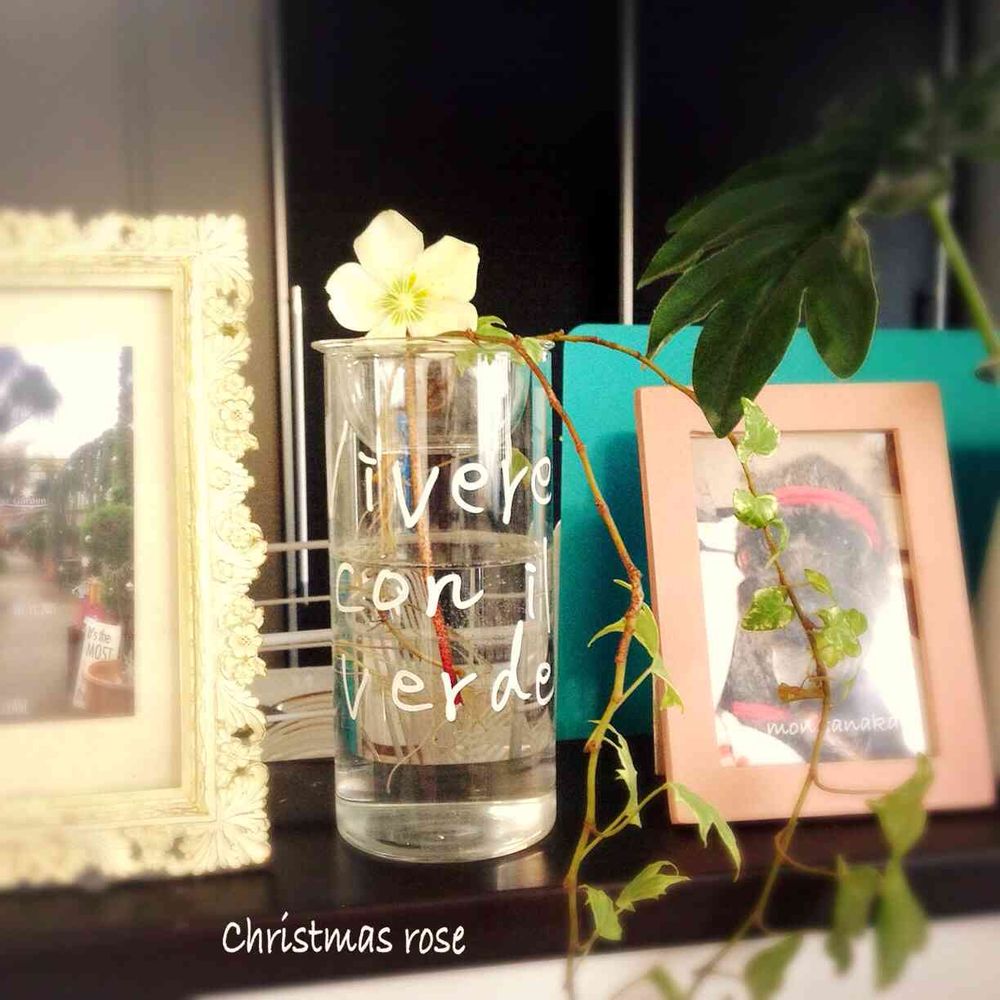 庭に咲いたクリスマスローズをカットして部屋に飾りました。