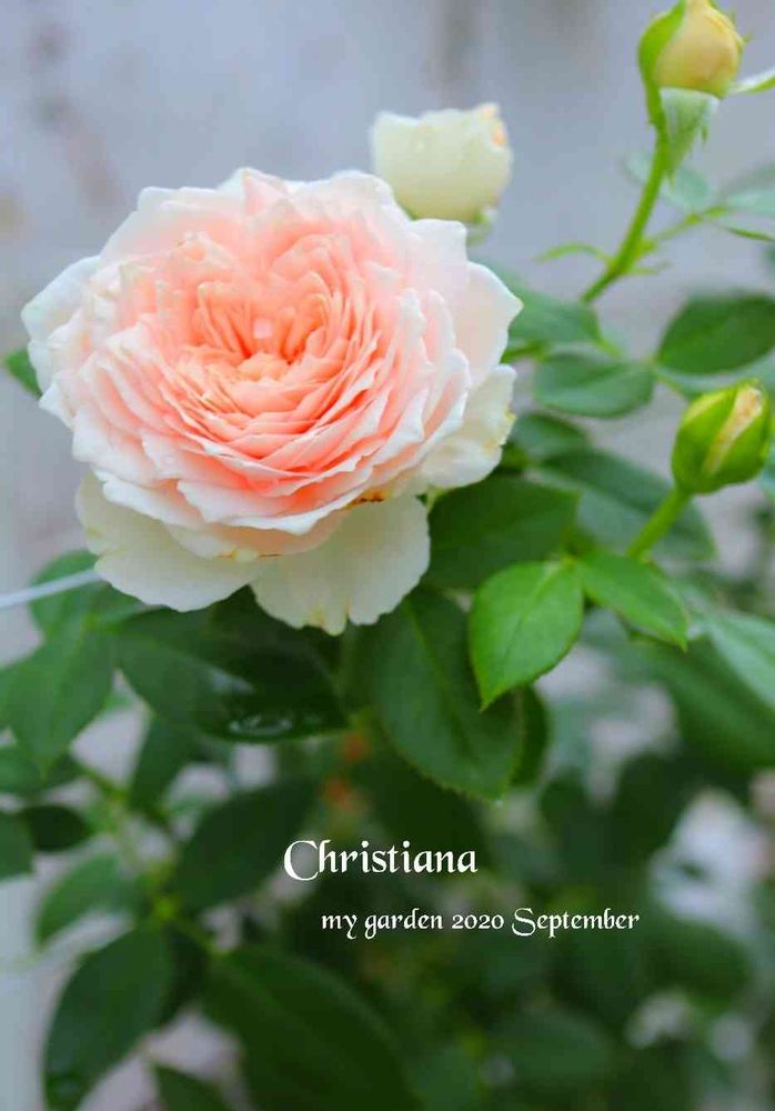 今朝のクリスティアーナです。四季咲きのつるバラです。昨日より随分開きました。