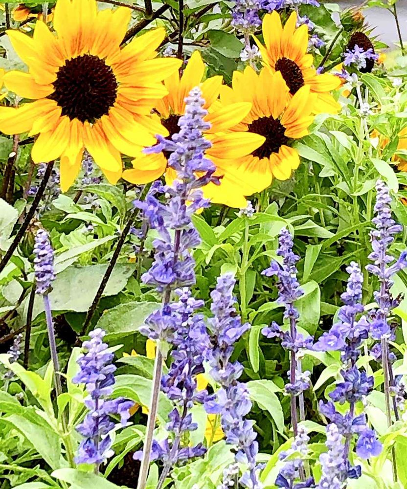 ヒマワリさんに見守られるサルビアさん💚優しいpicですね💕