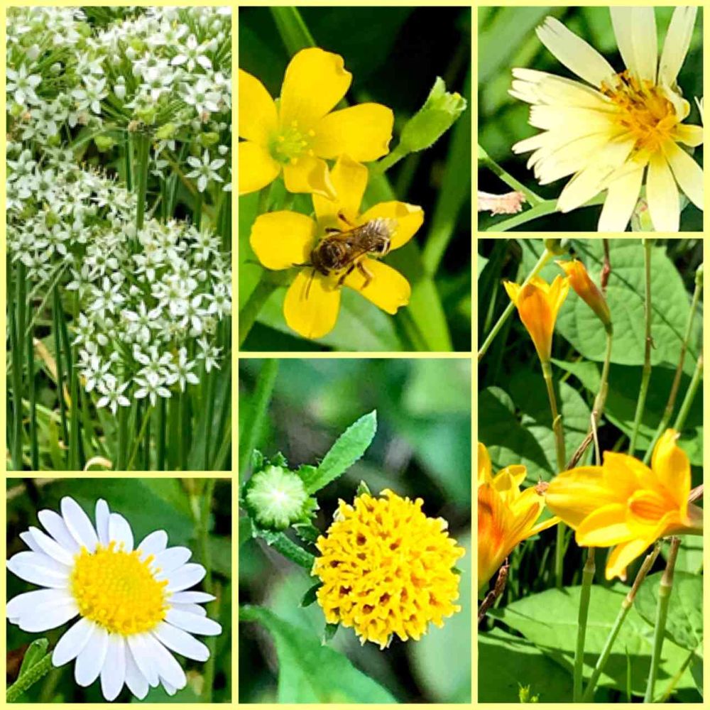 白・黄色系を集めてみました。全然名前が分かりません😅 「ニラ』と、先日教えていただいた『ハブランサス ツビスパツス』、ひっつき虫の花もありますね。