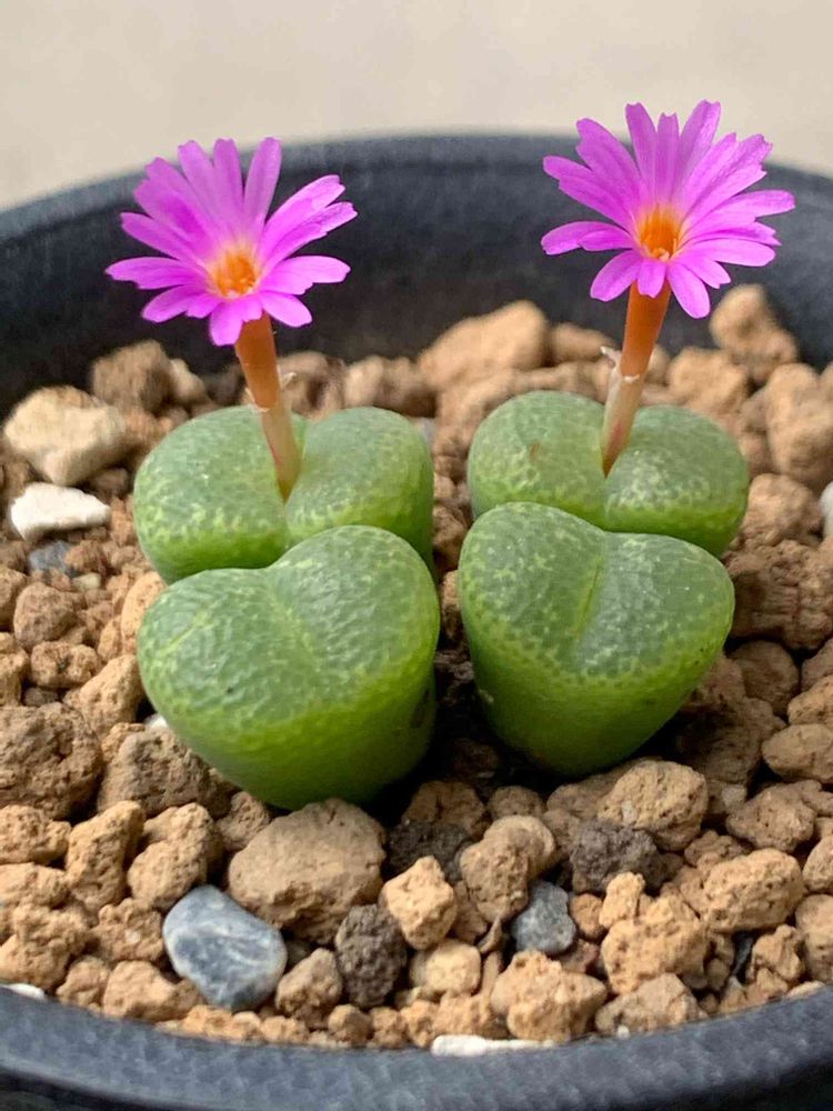 静かに咲く、コノフィツムやリトープスのお花を眺めていると癒されます👌