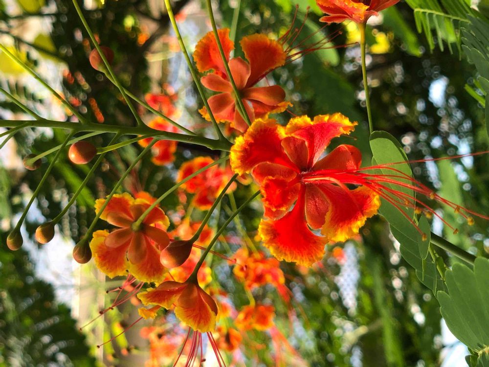 小さいハイビスカス🌺の花にもにてる小花が温室植物で咲いてます。🧡縁取り🌼黄色で可愛らしいヒラヒラ感。