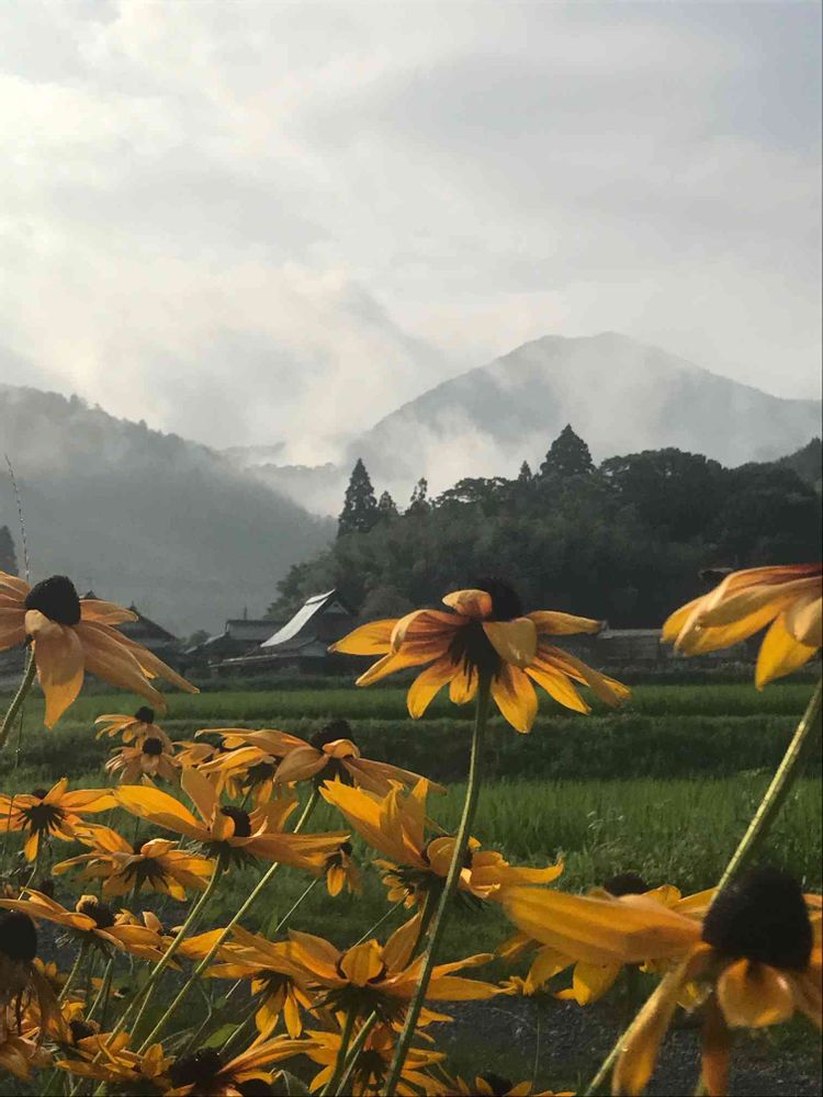 昨晩凄い雨が降ったので山に靄が上ってます😊