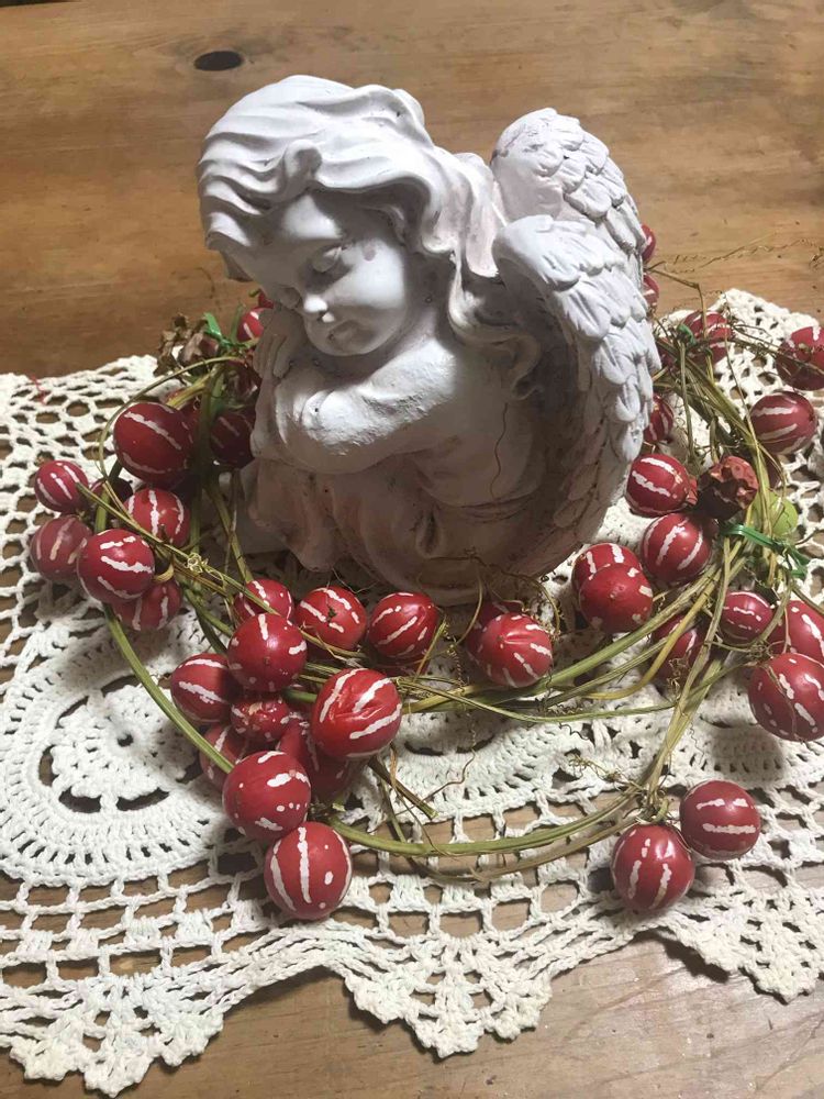 実が重くてリースも置いただけにしました、もっと早ければ実も柔らかくならなかったのでしょうね。確かに緑は可愛い💕