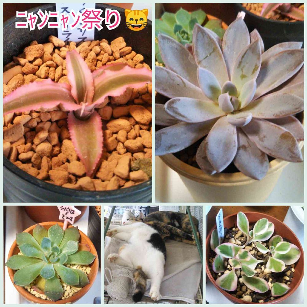 下の真ん中は、多肉棚を昼寝場所にしてしまったミケ母娘🤭