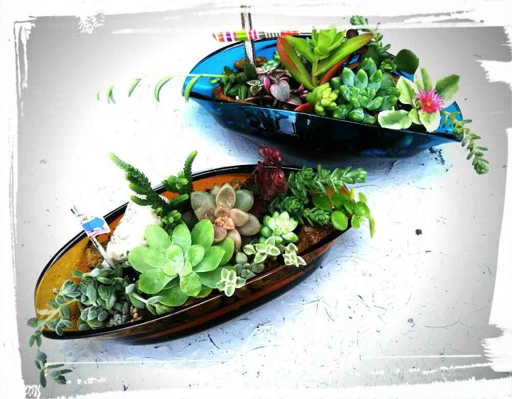 ガラス器の夏バージョン☀⚡✨🎵🌵寄せ植え完成~🎶