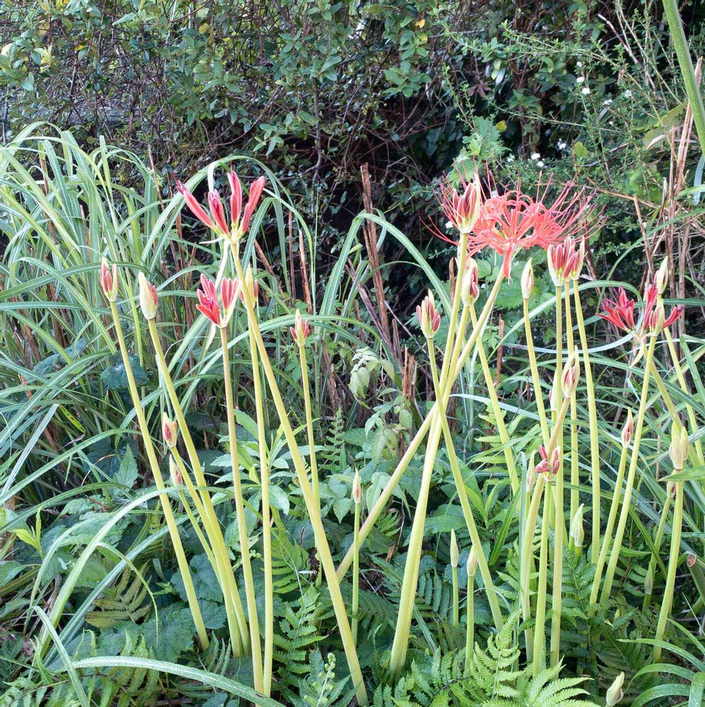 フェンスと小さな川の間の草が茂ってきたので鎌で刈ろうと思ったら曼珠沙華が咲いていたので、しばらくはそっとしておきます…