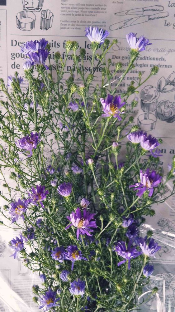 海外の新聞紙でくるんでくれて、いっそうお花を引き立ててくれる。🤗