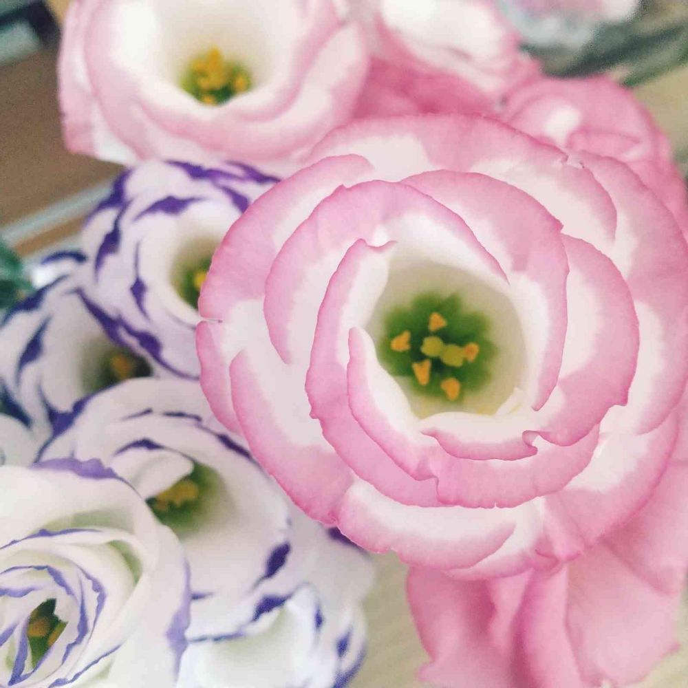 トルコキキョウの白に縁取りの色が綺麗✨と