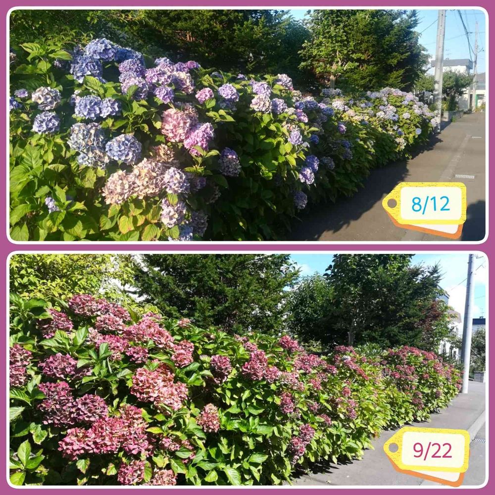 色の変化を楽しめるかなぁ~とワン散歩🐕の途中で写していた紫陽花 8月12日⇒9月22日