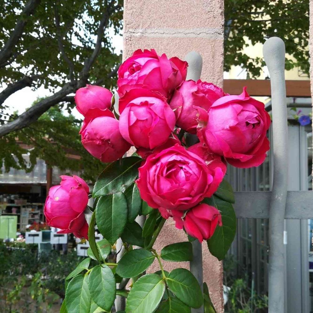 ガーデンストリートのスタッフ入り口に咲くルージュピエールドゥロンサール。