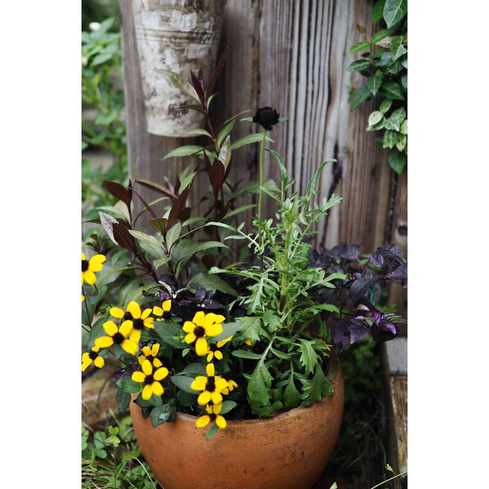 の4株を無理やり鉢に押し込んでみましたが、やっぱりルドベキアタカオが目立ち過ぎ~