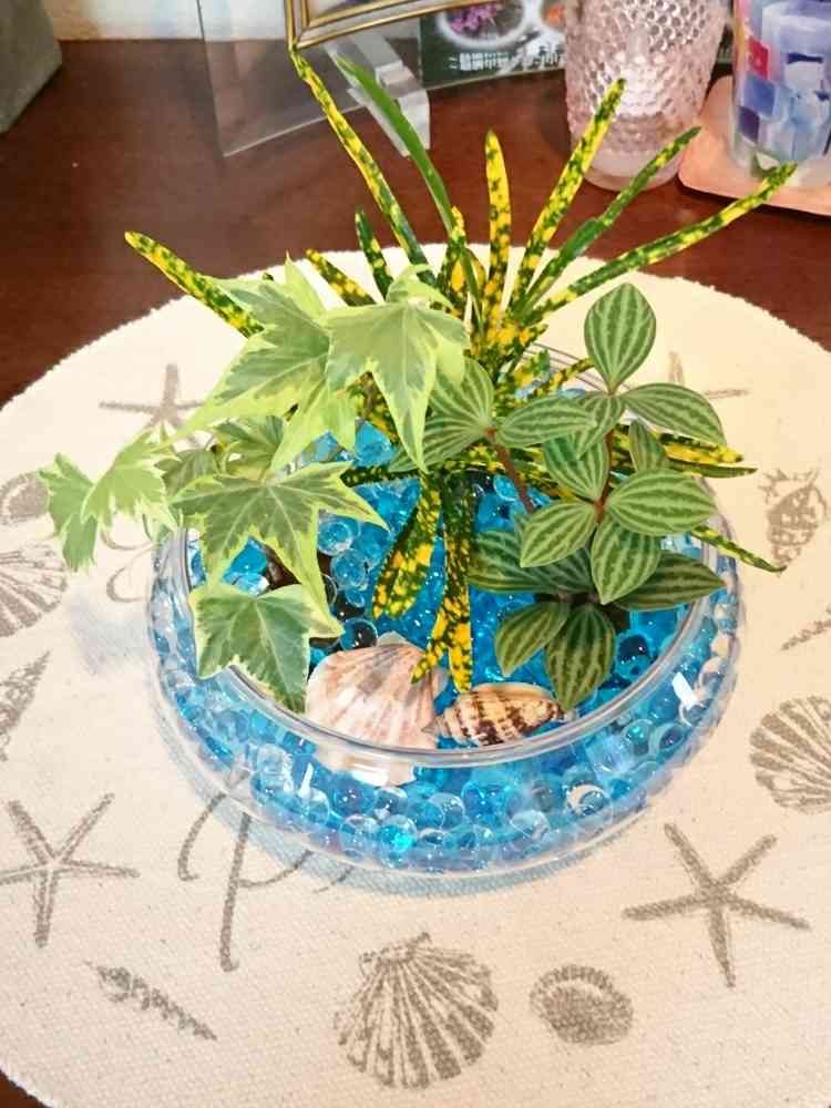 この間ナーセリーで購入した観葉植物で、夏の寄せ植え作ってみました。🌴🐚