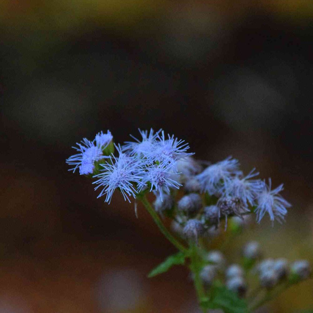 【研究学園の花々】2020年9月6日、研究学園から程近い豊里ゆかりの森。静まりかえった森の中に、爽やかにアゲラタムが咲いていました!