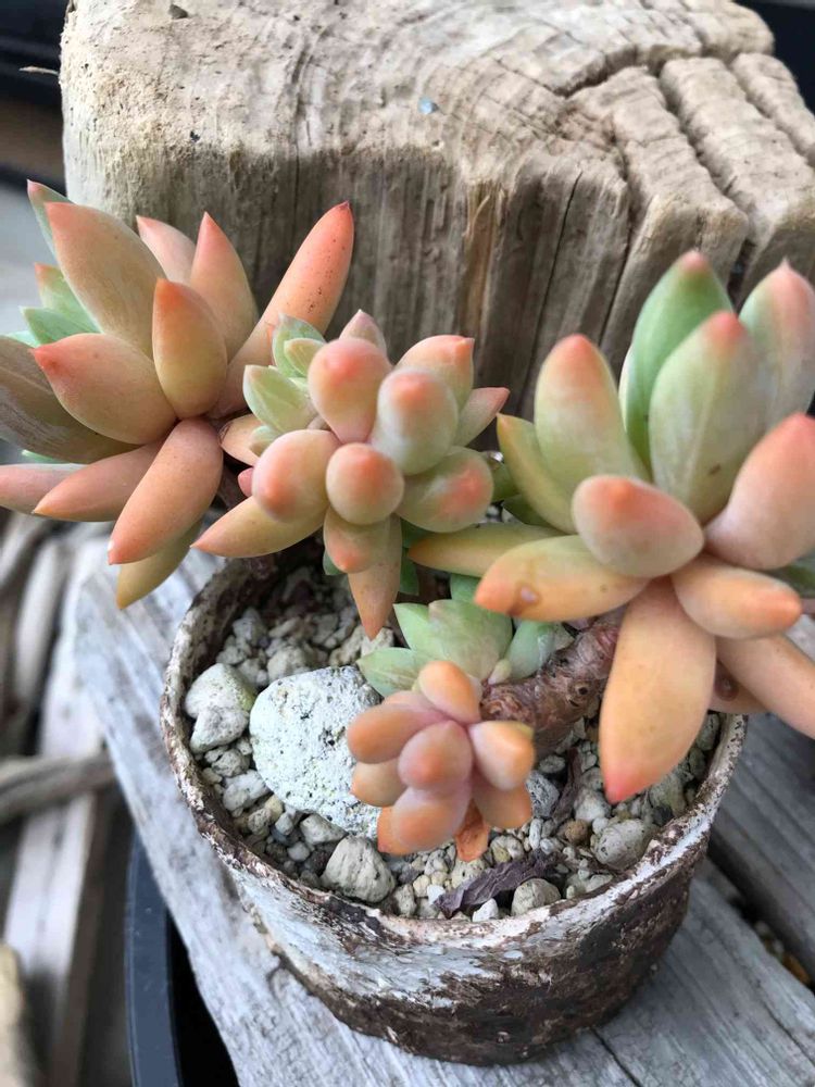リメ缶の鉢に鎮座していつの間にやら子株がニョキニョキ。