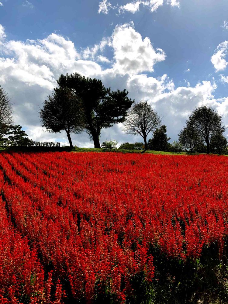 一面の真っ赤なサルビアは、見つめているとテンション上がりますね😆🎶