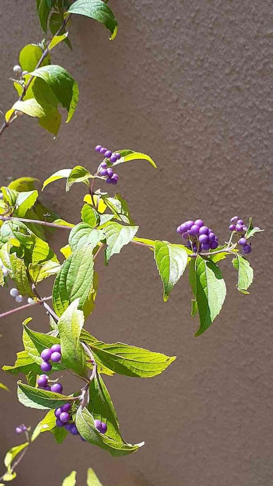 公園の野生的なムラサキシキブより葉が細くギザギザはコムラサキに似ているので驚きました😲