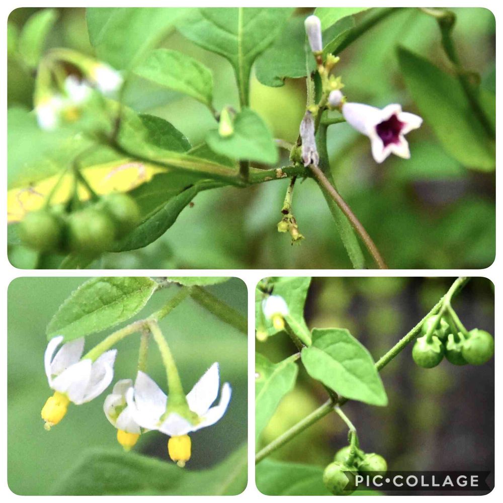 家のそばで、ふとみたらイヌホオズキに小さいヘクソカズラが絡まってました😊