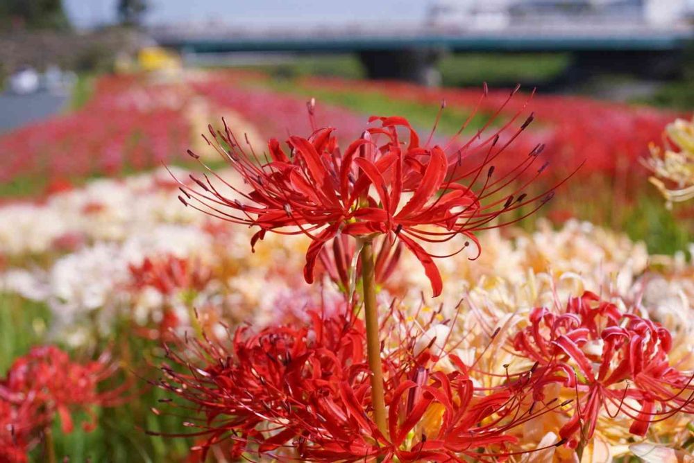 河川敷に彼岸花がず~っと咲いているのかしら?