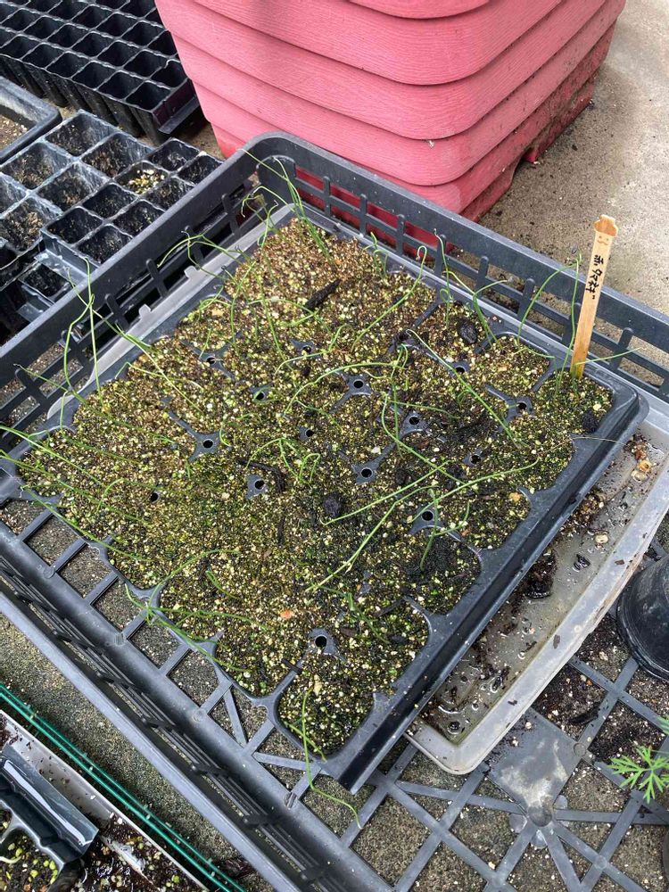 赤玉ねぎも発芽しました。極早生玉ねぎの苗も成長しています。