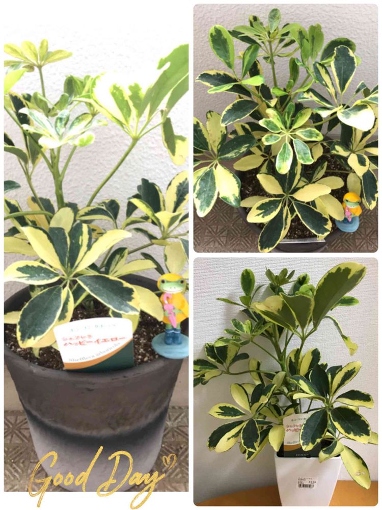 「シェフレラ」ハッピーイエローを衝動買いしてしまった😰通称「ホンコンカポック」です🍀斑入りが好きだわー🍀💓