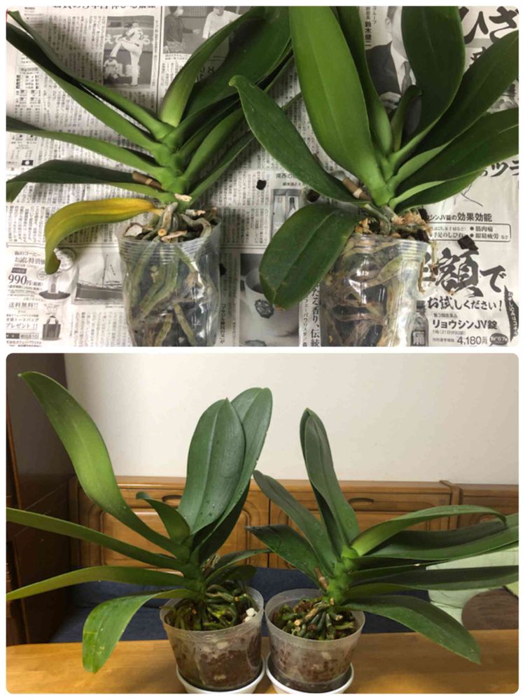 命拾いした胡蝶蘭たち😊それにしても立派な葉っぱですねー❗頼もしい😍