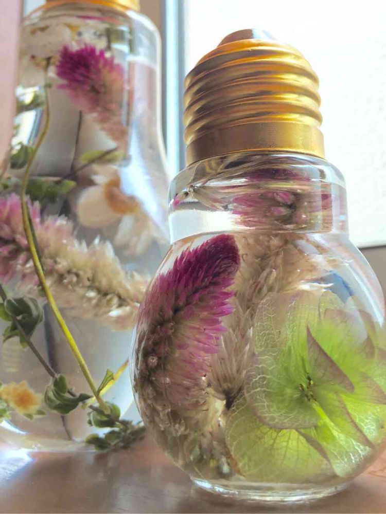 液体の中のドライフラワーは、また一味違った雰囲気でいいですよ~💓💓