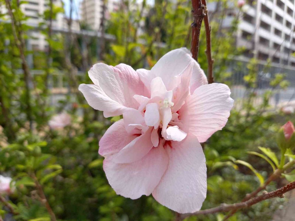 陶芸教室の近くに咲いていた、八重の木槿(ムクゲ)です。