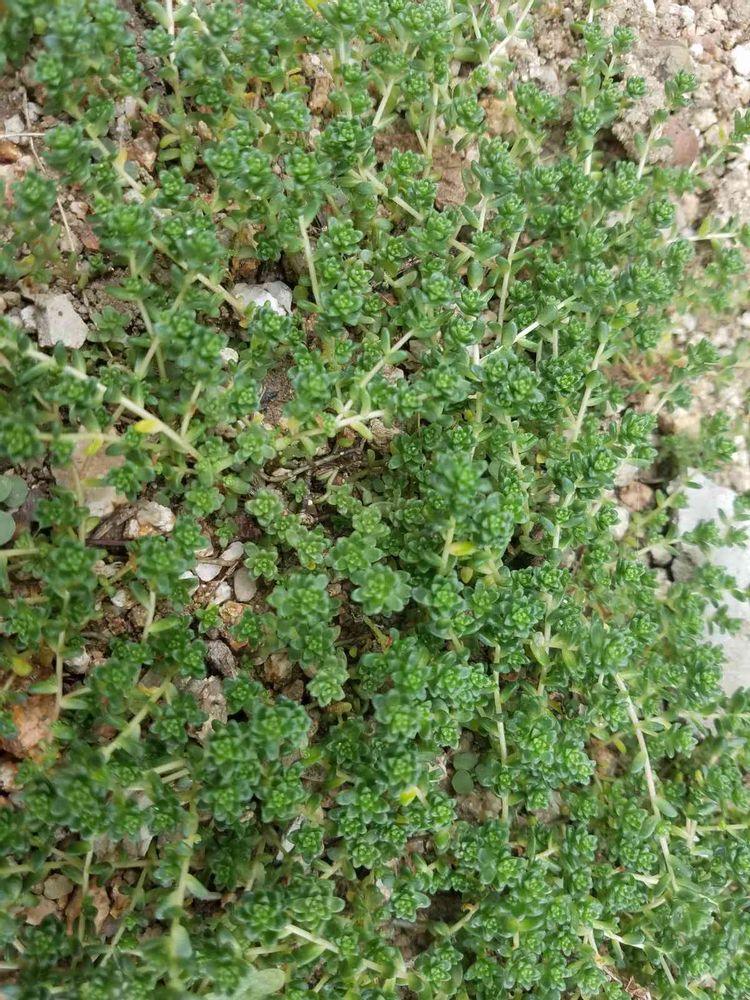 オカタイトゴメ Sedum oryzifoliumvar. pumilum 原産地不明の帰化植物、道端や空き地や家のまわりに固まって生える。