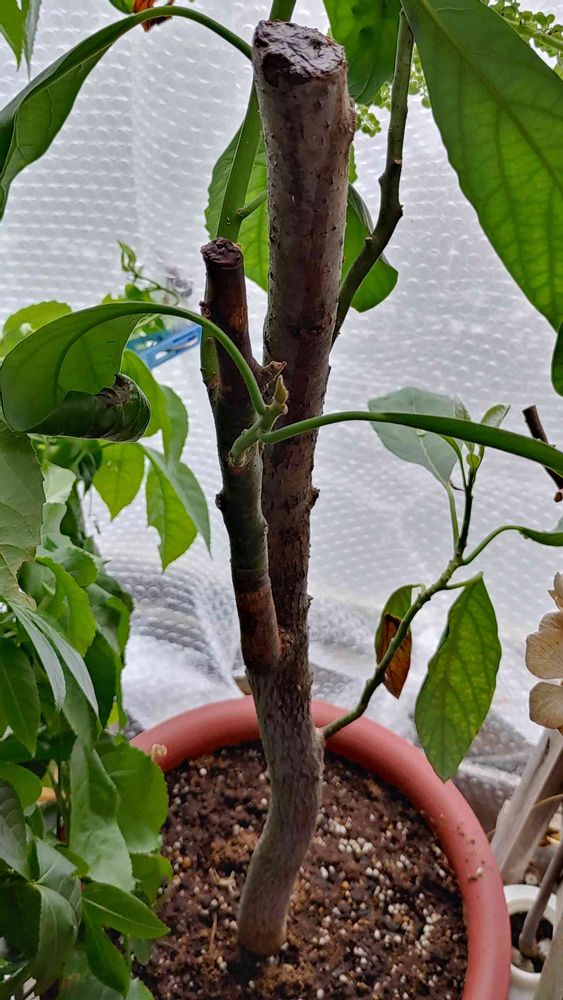 古参のアボカド。水耕栽培から鉢植えになって幾星霜。