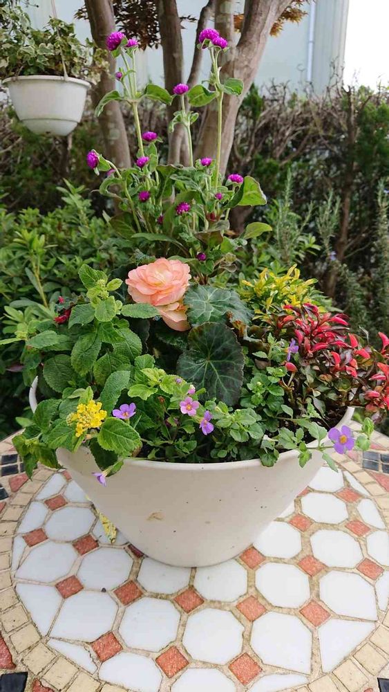 千日紅の濃いピンクは 別に入れようと思ってたんですけど この寄せ植えに 背の高い物がなくて 千日紅を 入れてみたら 案外良かったかなと 自己満足です🈵😃✨