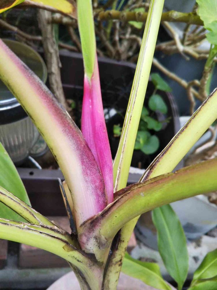 今年三株目の耐寒性ピンクバナナ開花の兆し✨