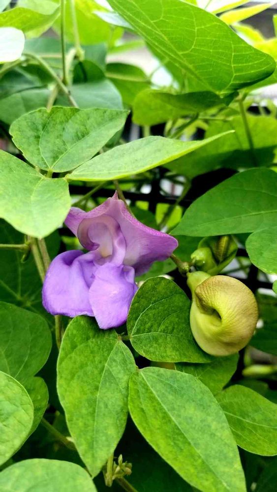 緑のカーテンどころか緑の屏になっていて2、3個咲いてました😆