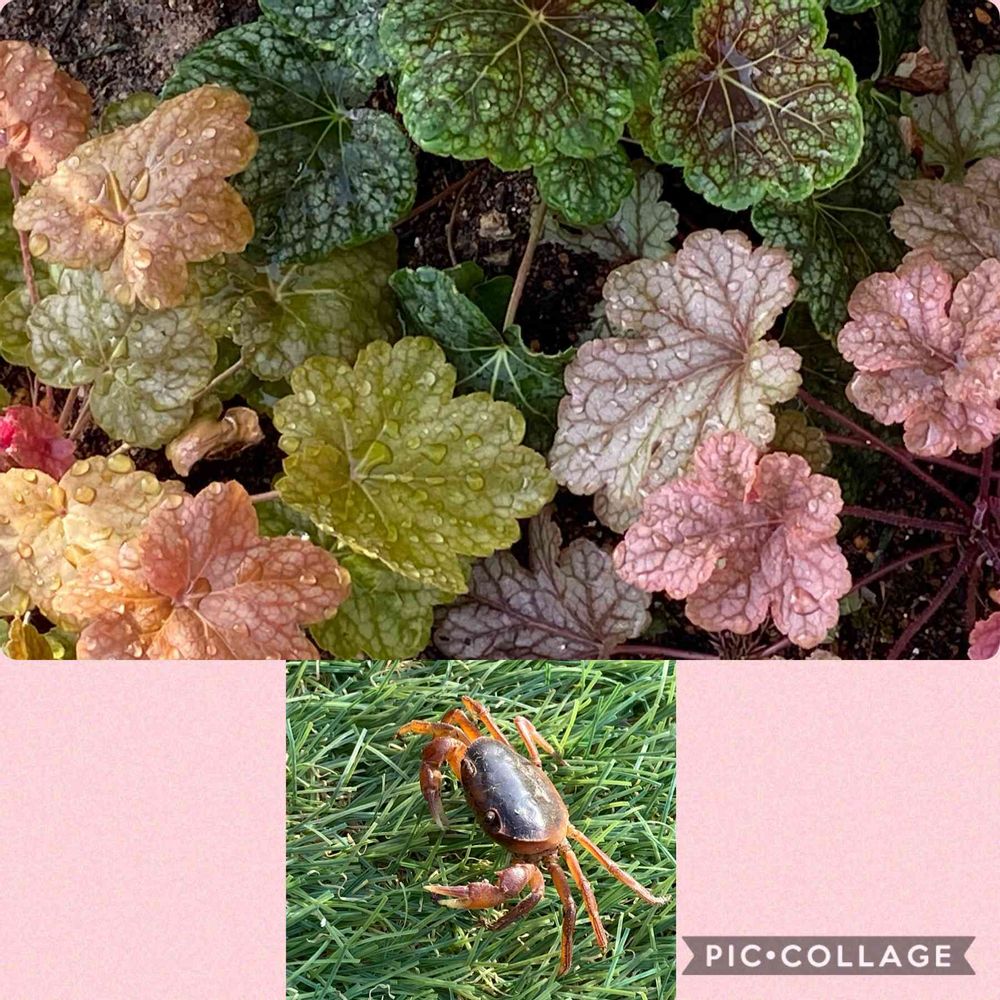 わぁ〜まっしゅさんちもヒューケラあるんだねぇ。秋っぽい色合いのヒューケラ、私も今一番お迎えしたいお花?葉っぱ?なの。素敵だねぇ💓カニ🦀さん、ヒューケラの横の石の下に住んでるの?!たのしー😆さぁ、今日もうひと頑張り!!