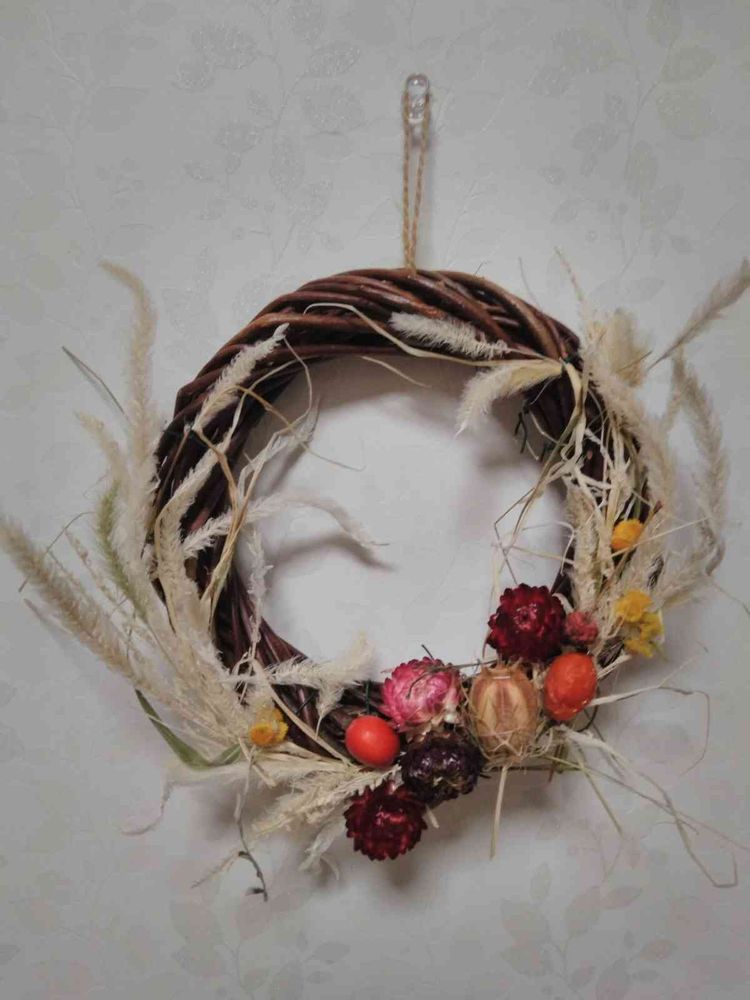 (=^・^=)ジャラシを漂白して、貝殻草やローズヒップ、ニゲラと飾り付け