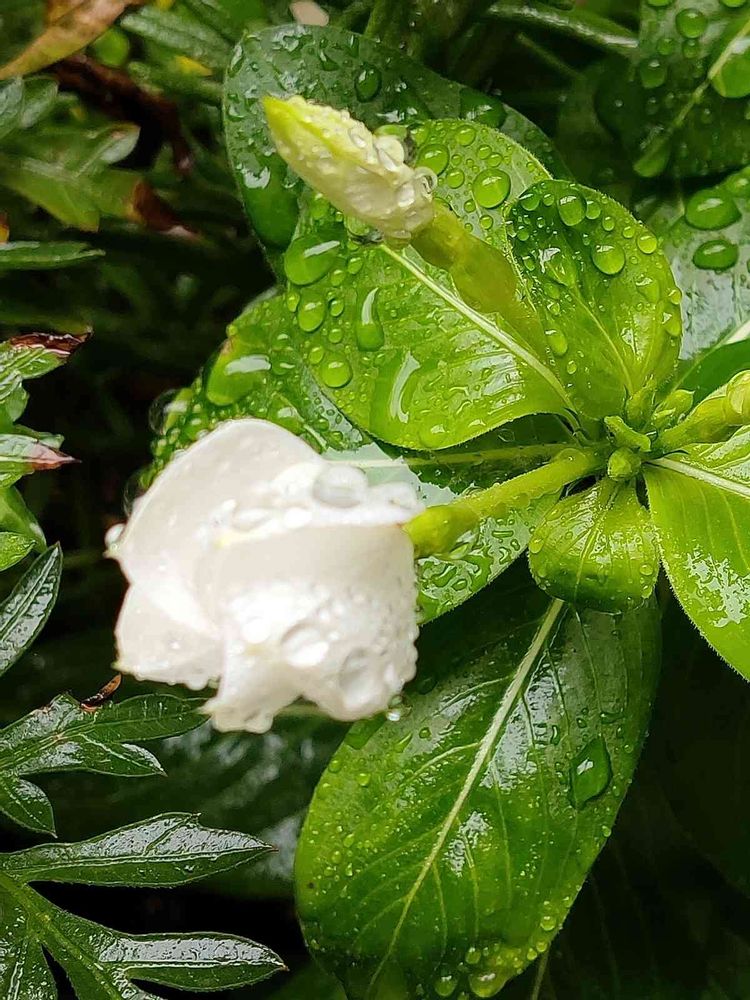 だけど、咲くまでは、どんな色かもわからなかったので、白いその姿は今日の☔の中で、より清楚でいい感じになってると、自己満足💖