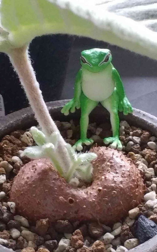 休眠まだまだみたい綺麗な緑のモフモフ葉っぱが2個育ってる😵