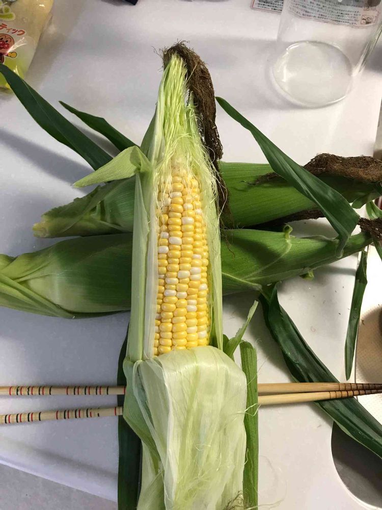 初の家庭菜園にて、トウモロコシが出来ました!朝取れ、甘ーい♡