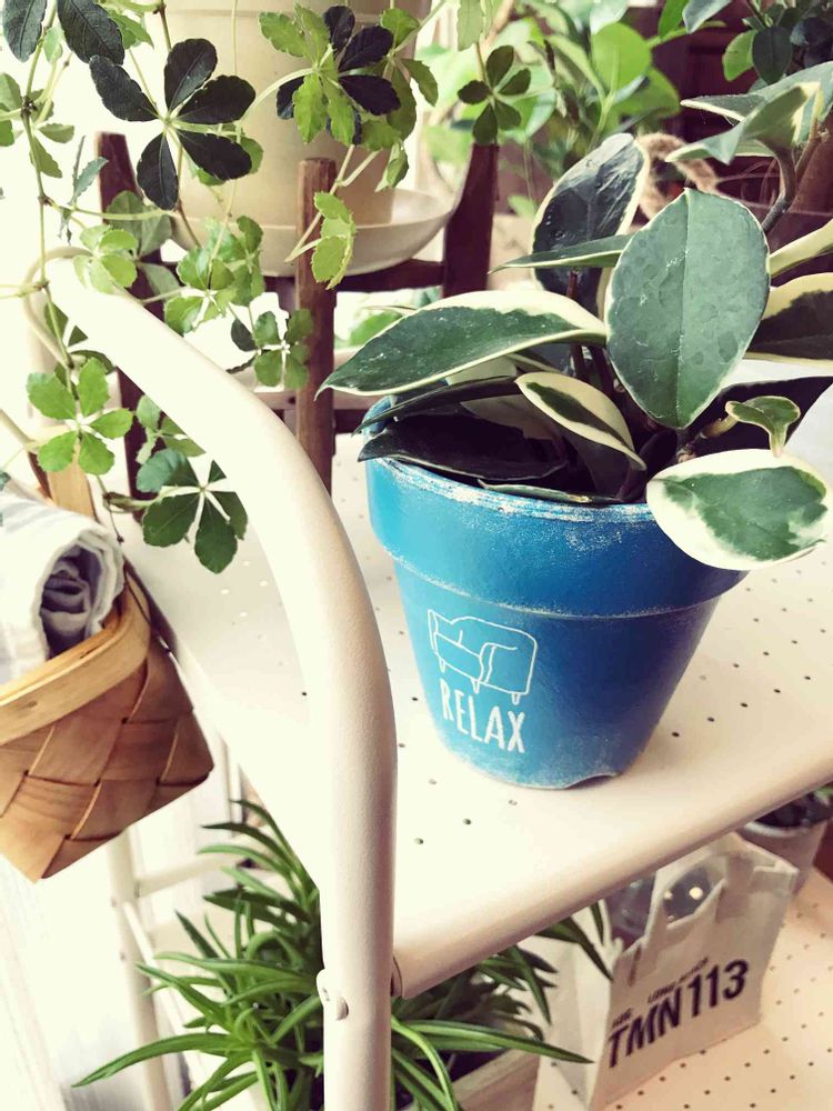 手づくりのリメイク鉢だそうで、珍しくブルーのものに惹かれました♡