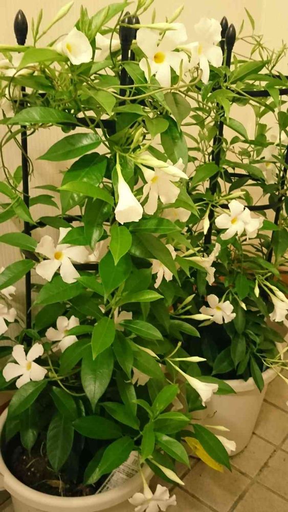 強風を避けるため玄関内に避難したサンパラソルの鉢。いつもは青空といっしょなので、室内で見るのは新鮮😀🎵