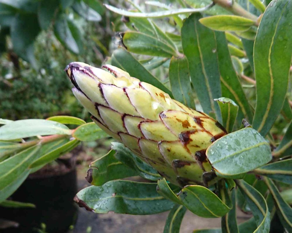 さん、やはりプロテアは半日陰以上じゃないと花付かないのかもしれないですね。うちのピンプリもこの歳の悪天候で一番陽当たり側だけ花芽残りました!