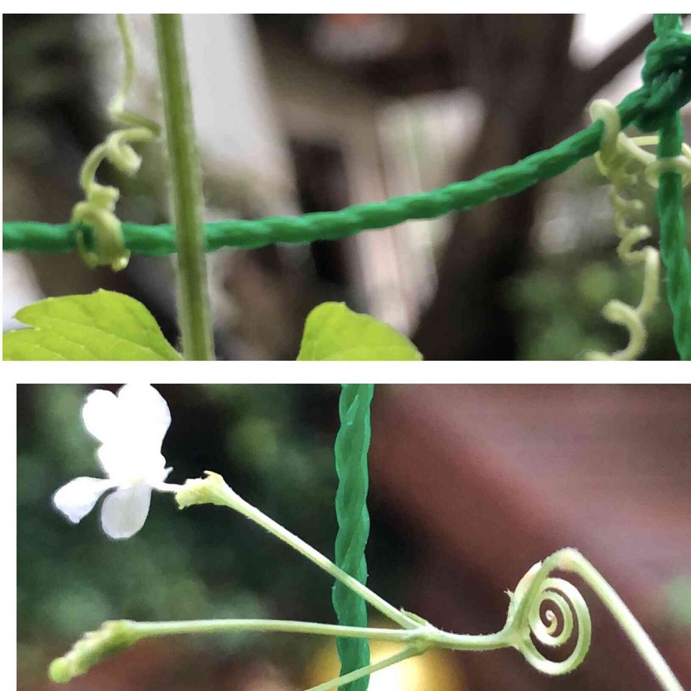 フウセンカズラのツルの巻き方。見てたら、いろいろあって面白い😊でも、全く動いてる気配がないのに、いつこんなに、クルクル巻いてるのでしょう?